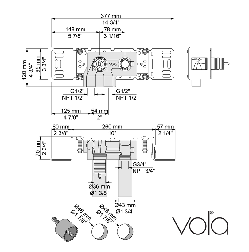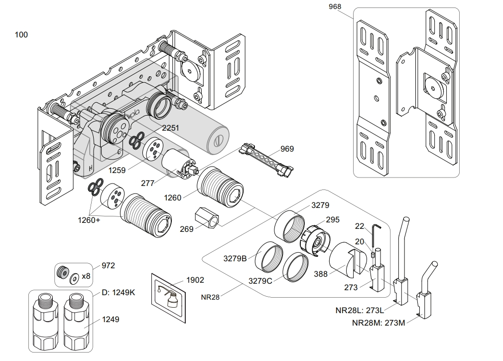 CUERPO EMPOTRADO MONOMANDO SALIDA FIJA VOLA Ref.100
