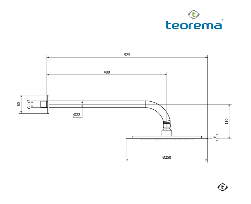 TEOREMA TREUNOSEI DUCHA MURAL 25cm INOX