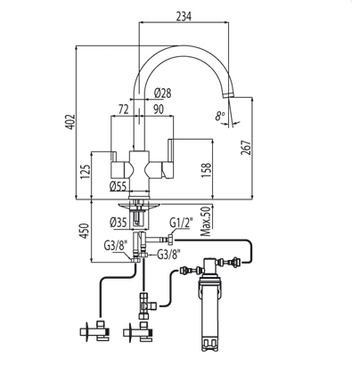 MONOMANDO COCINA VERTICAL ECOSMOSIS GRIFERIA TRES Ref.03045501